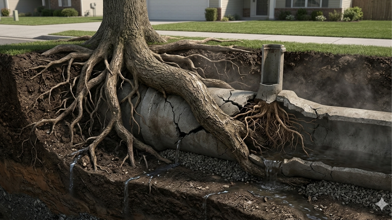 Tree roots are naturally drawn to moisture and nutrients. Underground sewer lines carry both, especially when small leaks or condensation are present around pipes. Even a tiny crack or loose joint in an older sewer line can release moisture into the surrounding soil.
